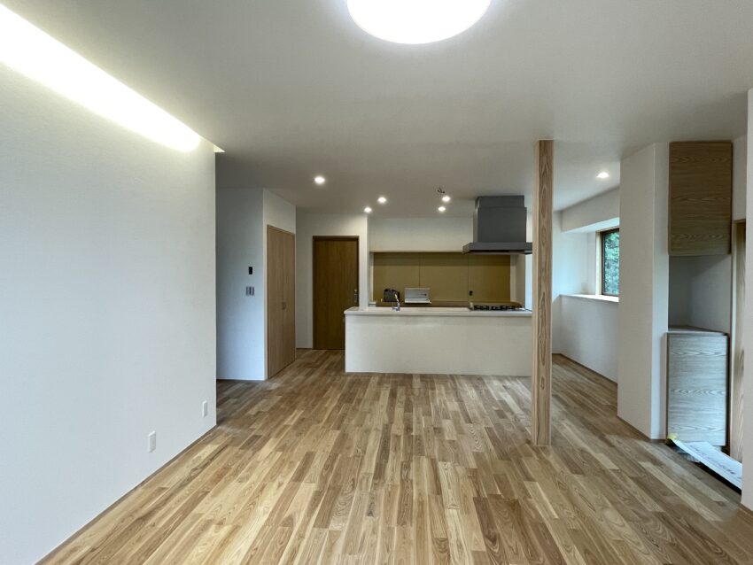 築47年の木造平屋住宅を全面改修しました。遠方で生活されていました住まい手様が帰郷を機にご実家をリノベーションすることになりました。生まれ育った住まいの雰囲気を大切にしながら、安心快適に暮らすことができるように耐震性能、断熱性能を大幅に向上させた住まいです。四方を緑に囲まれていますので、どのお部屋からもお庭が眺められるように窓を配置しています。断熱材には調湿性能の高いセルロースファイバーを施工し、無垢材や珪藻土で仕上げた空間はさわやかな空間になりました。気持ちの良い空気感をぜひご体感いただければと思います。