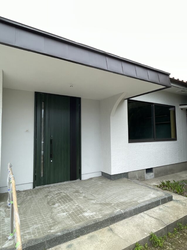 玄関ドアや窓は全て新しくしました。外壁はモルタルなどで補修した上で全面塗装しています。