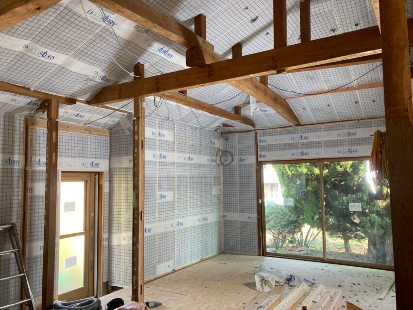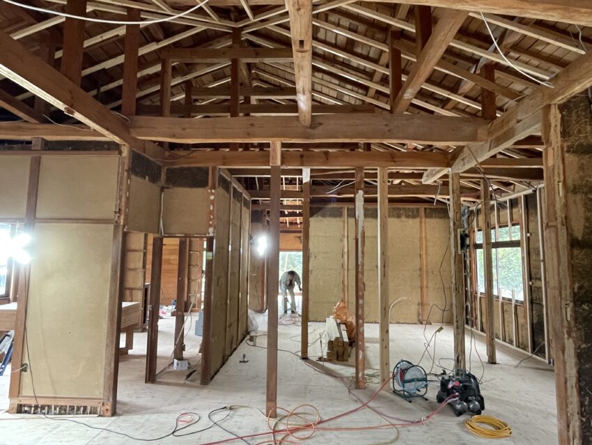 解体後の様子です。土壁を残しながら改修しています。